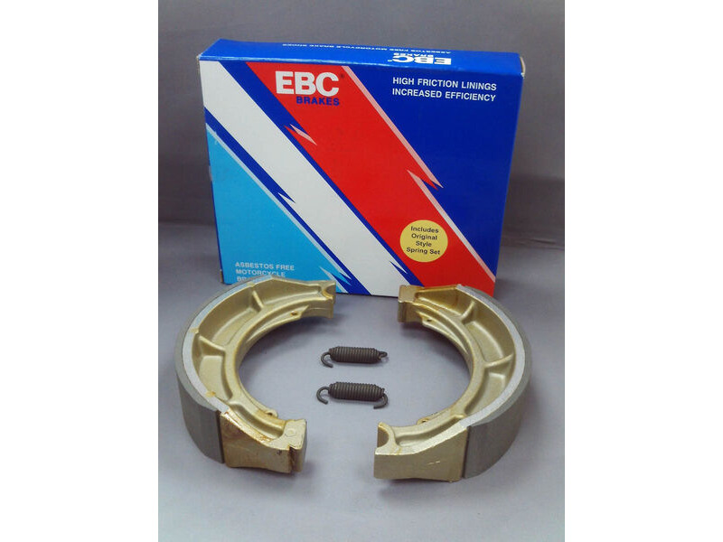 EBC Brakes plain motorcycle replacement brake shoes are an OE quality replacement brake shoe made with boned brake linings and using high pressure die cast aluminium platforms for two wheeled machines. Shoes are edge trimmed and radius ground exactly into the brake drum. They have chamfers on the ends of the lining and come complete with OE style brake shoe springs.