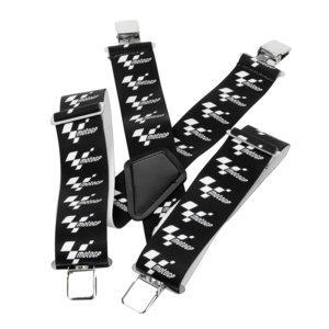 Heavyweight elasticated braces designed specifically for use with motorcycle leather and textile trousers.