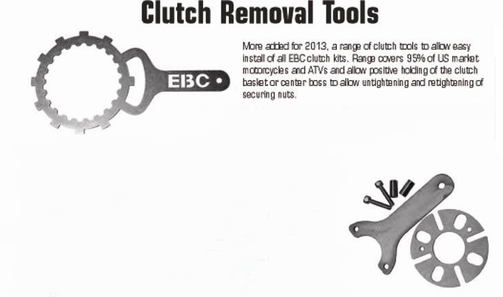 A range of clutch tools to allow easy install of all EBC clutch kits. Range covers 95% of US market motorcycles and ATVs and